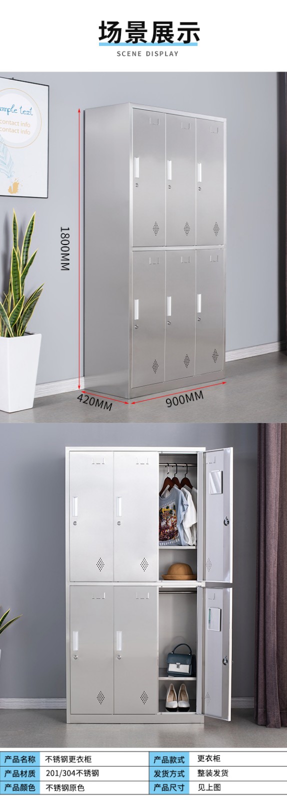 不銹鋼更 衣柜6門
